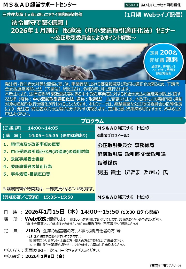 2025.12.162026年1月施行 取適法 (中小受託取引適正化法)セミナー ~公正取引委員会によるポイント解説~ -